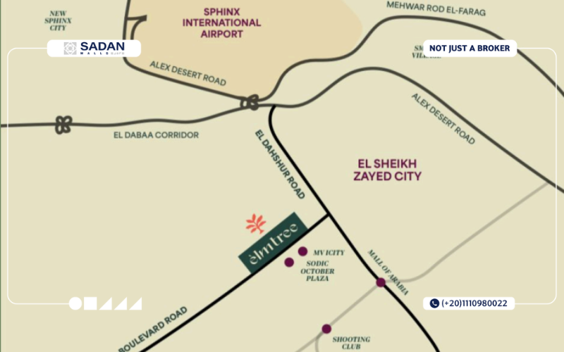 حرصت شركة ايلم للتطوير العقاري على بناء مشروعها بموقع حيوي استراتيجي يضمن للمستثمرين ترافيك مستمر وعوائد مضمونة، لذا سنجد أن مشروع Elm Tree Commercial Park October يقع على محور البوليفارد بالتحديد، موقع يسهل الوصول إليه لأنه مربوط بالعديد من الطرق والمحاور الرئيسية.